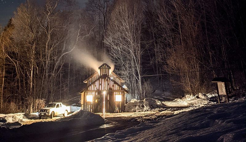 A note from Mike: Even though I am the main person running the operation, my wife and sons have always been a part of sugaring. In particular, they have always helped tap trees. And since the boys were in middle school, Margo and Elijah and Caleb have actually done most of the tapping. Elijah has even come home from college to help. Margo has also often joined me in the sugarhouse to help with boiling and bottling.